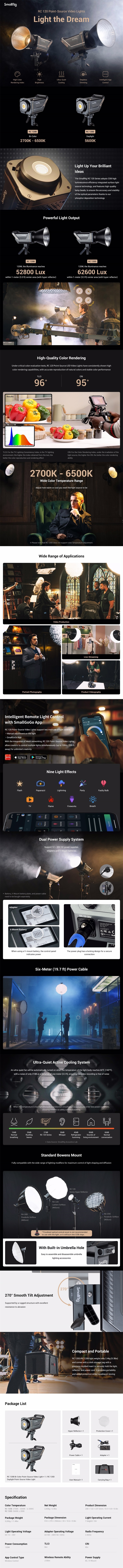 SmallRig RC120B (3615) je představitelem první generace profesionálních studiových LED světel značky SmallRig. Využívá moderní COB (Chip-On-Board) LED technologii pro vysokou intenzitu (4.450 lux) a také vysoce účinný reflektor pro dosažení intenzity až 52.800 lux ve středu světelného toku ve vzdálenosti 1 m. Nabízí rovněž vysokou barevnou přesnost (CRI 95+,…