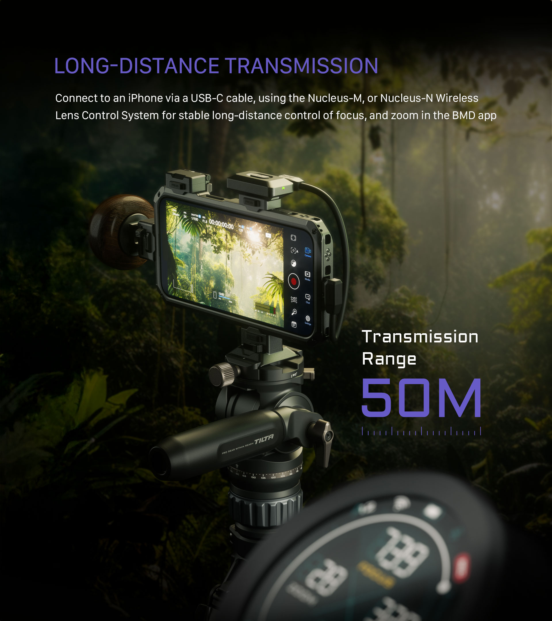 Uživatelé pak mohou spárovat ruční kolečko Nucleus Nano II prostřednictvím 2,4G a ovládat zaostřování a zoom prostřednictvím aplikace Black Magic.