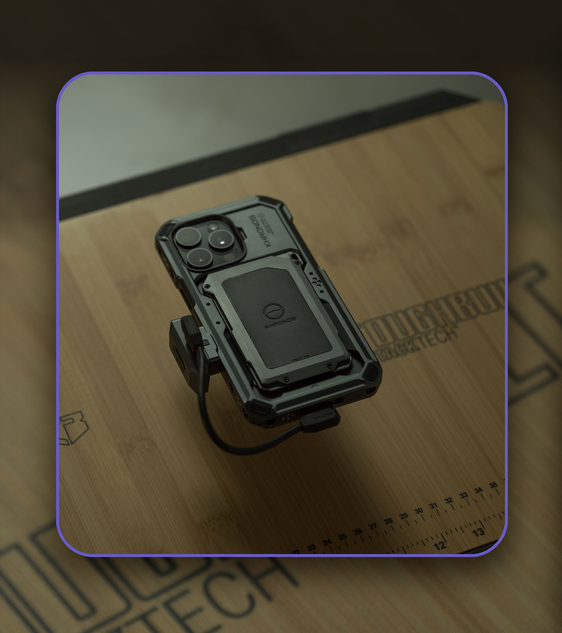 Toto příslušenství se upevňuje pomocí rychlospojky Quick Release, kterou najdete na našem pouzdře Khronos Case for iPhone, a připojuje se k iPhonu 15 Pro a Pro Max pomocí přiloženého kabelu USB-C.