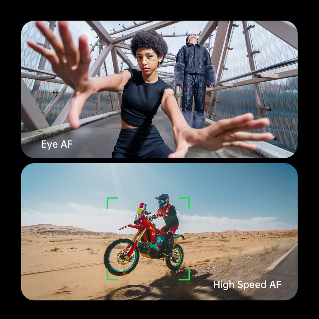 Tichý krokový motor STM poskytuje vysokou hnací sílu potřebnou pro přesné automatické zaostřování a sledování a podporuje rozpoznání zaostření obličeje a očí.