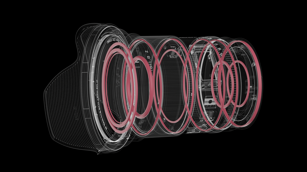 AF 16 mm F1,8 Z využívá optickou konstrukci objektivu z 15 členů ve 12 skupinách se třemi vestavěnými asférickými čočkami, které vytvářejí zážitek z obrazu s vysokým rozlišením.