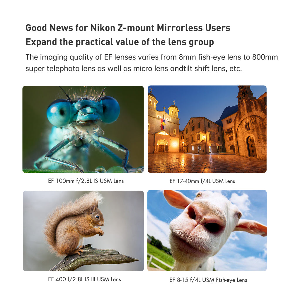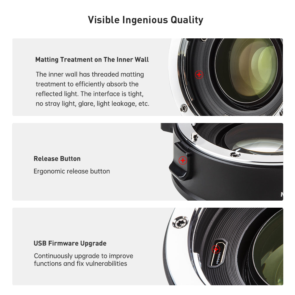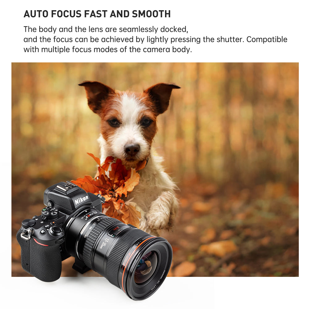 Speed Booster Viltrox EF-Z2 umožňuje vašemu fotoaparátu Nikon Z6,Z7 nebo Z 50 více možností mezi objektivy řady EF-mount, zachovává nativní výkon AF objektivu, stabilizaci a podporuje AF s detekcí obličeje a oka Nikon. Nabízí také 0,71x ekvivalentní ohniskovou vzdálenost na základě původní ohniskové vzdálenosti a zvyšuje světelnost vašeho fotoaparátu o 1…